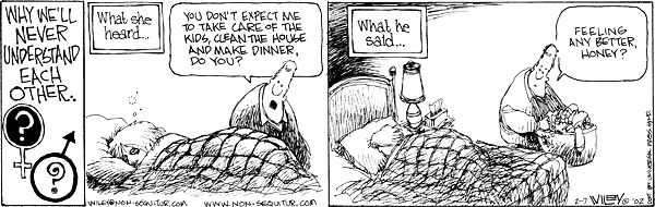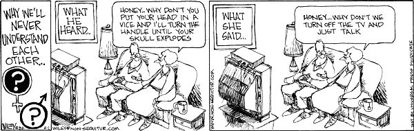 He Said, She Said Why men and women will never understand each other: Share this: Click to share on Facebook (Opens in new window) Facebook Click to share on X (Opens in new window) X Click to share on Reddit (Opens in new window) Reddit Click to share on Pinterest (Opens in new window) Pinterest More Click to print (Opens in new window) Print Click to email a link to a friend (Opens in new window) Email Click to share on LinkedIn (Opens in new window) LinkedIn Click to share on Tumblr (Opens in new window) Tumblr Like Loading... Related