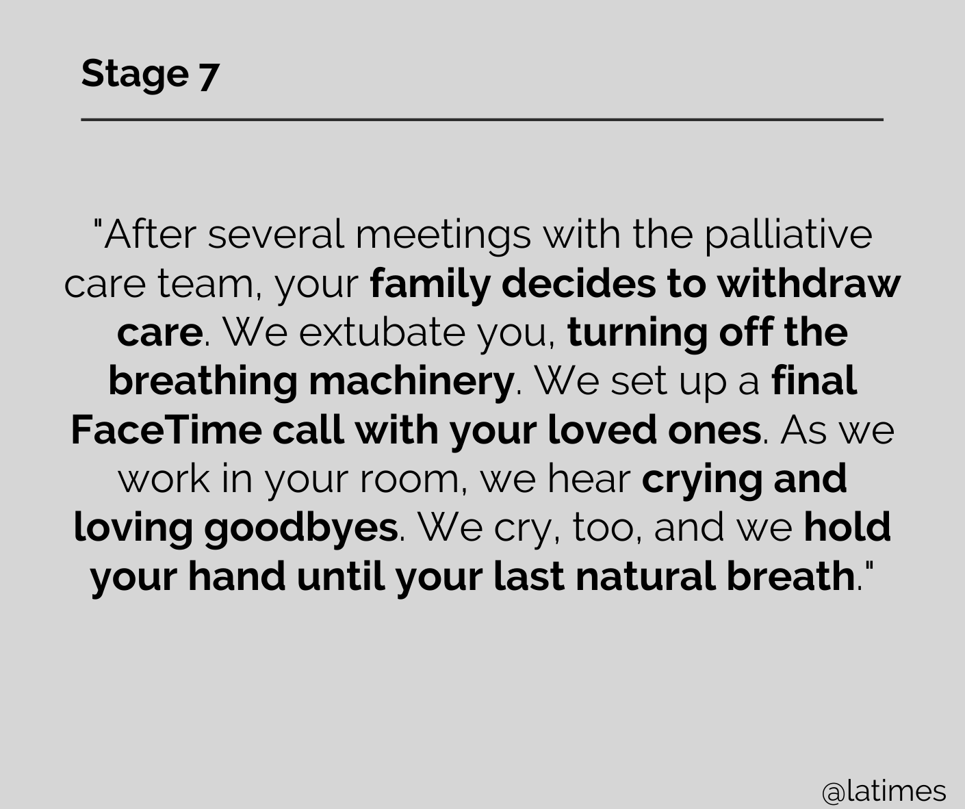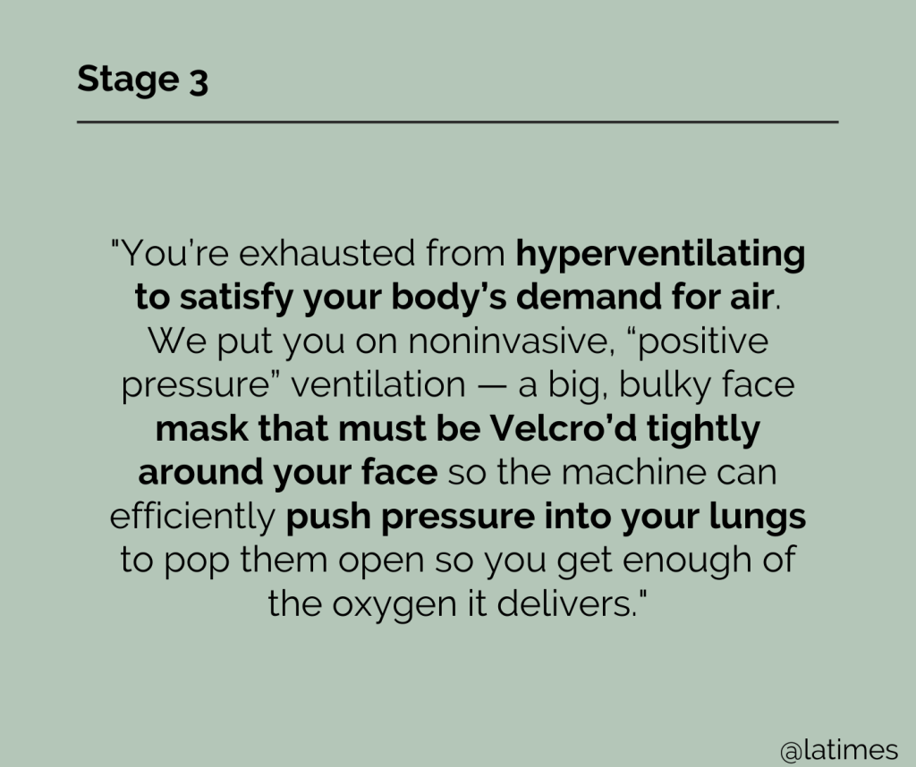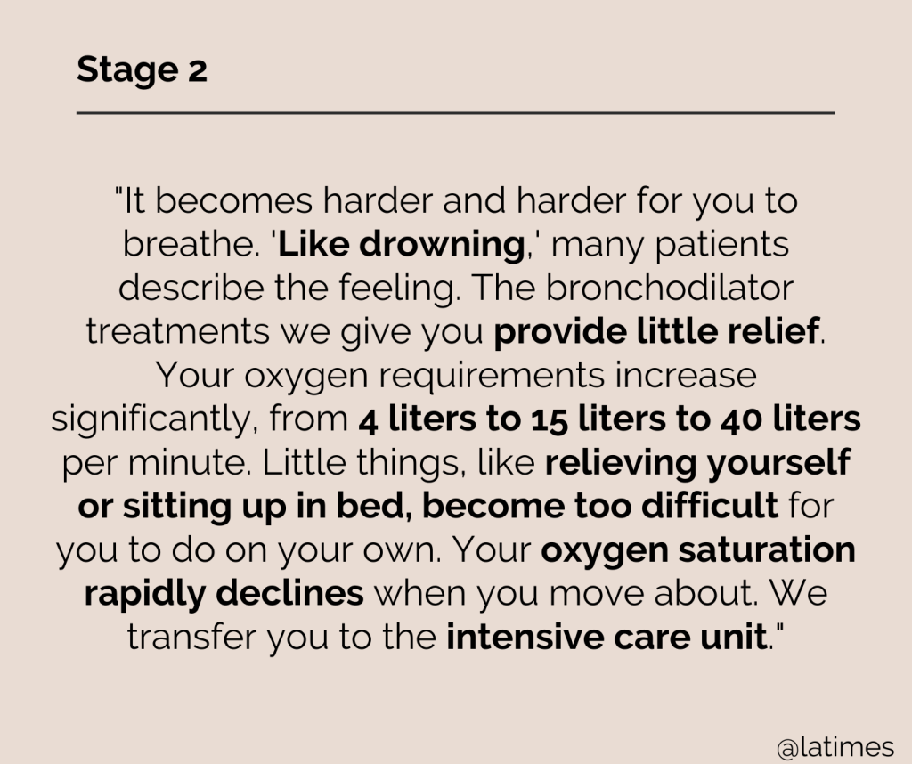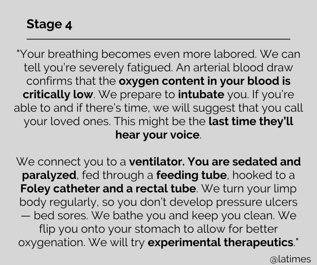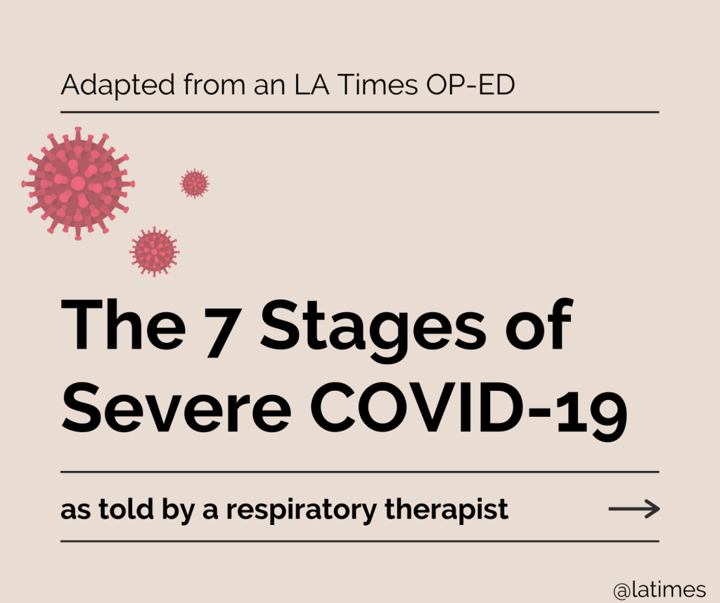The 7 Stages of Severe COVID-19 – as told by a respiratory therapist. Adapted from an LATimes Op-Ed